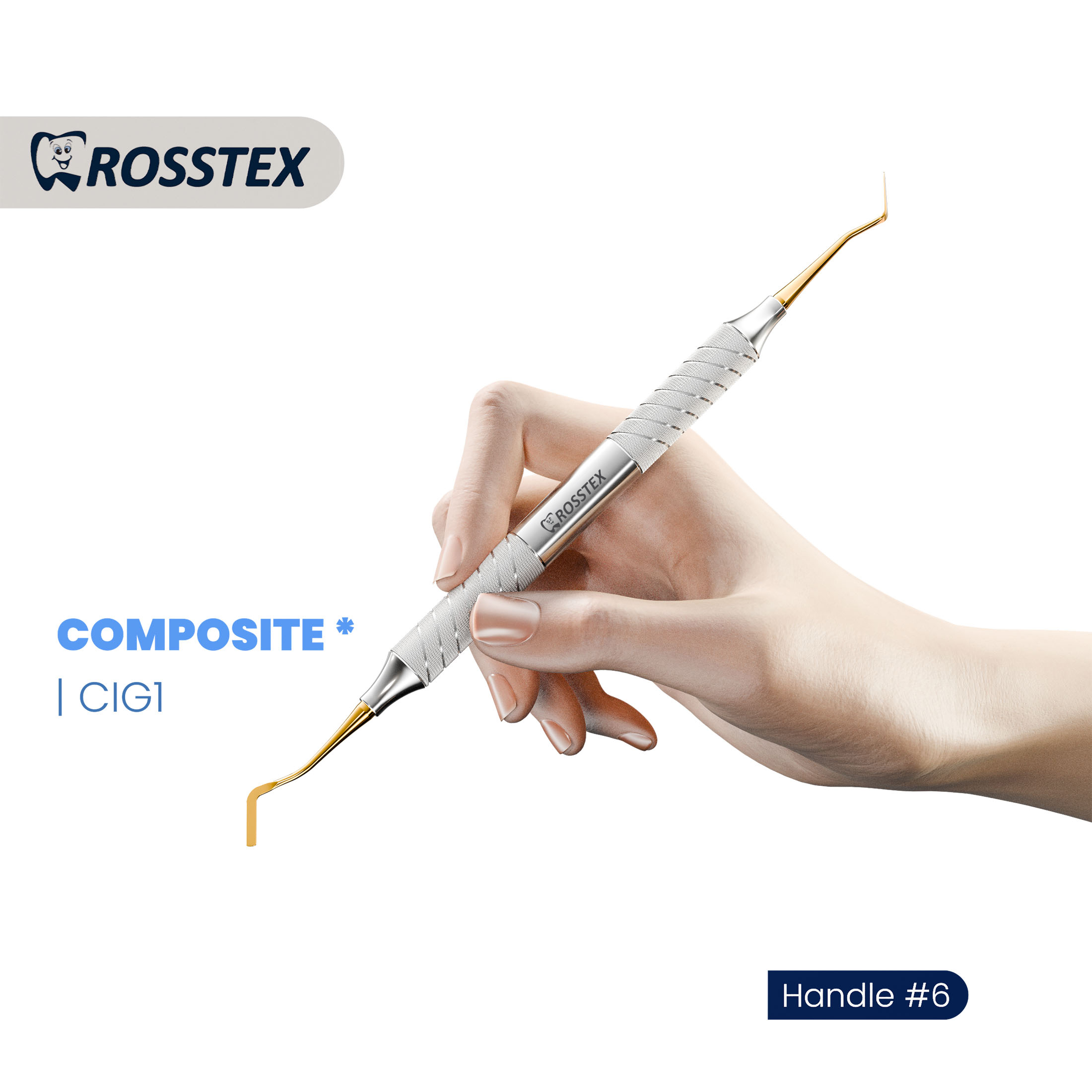 ﷼. 60.00 ﷼. 60.00 ﷼. 60.00 Composite Instrument CIG1 features a paddle-shaped design with a titanium nitride gold coating, offering excellent resistance to scratching and sticking. This ensures smooth handling and precise placement of composite materials, while its ergonomic structure provides superior control and comfort for high-quality restorative dental procedures.