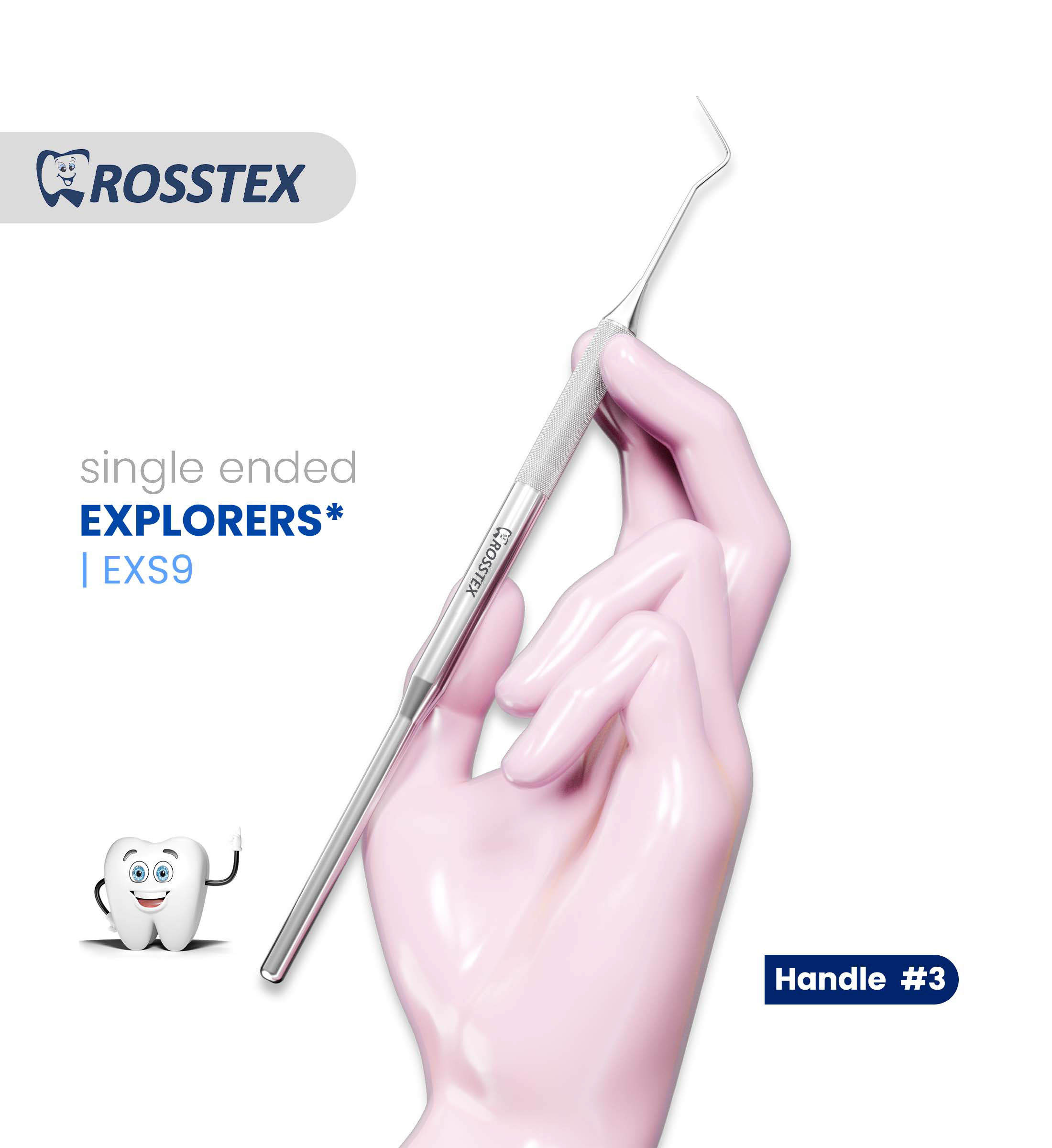 EXS9 Dental Explorer is a single-ended instrument with a curved, flexible tip, ideal for detecting caries, calculus, and surface irregularities with high tactile sensitivity. EXS9 a dependable tool for detailed dental examinations.
