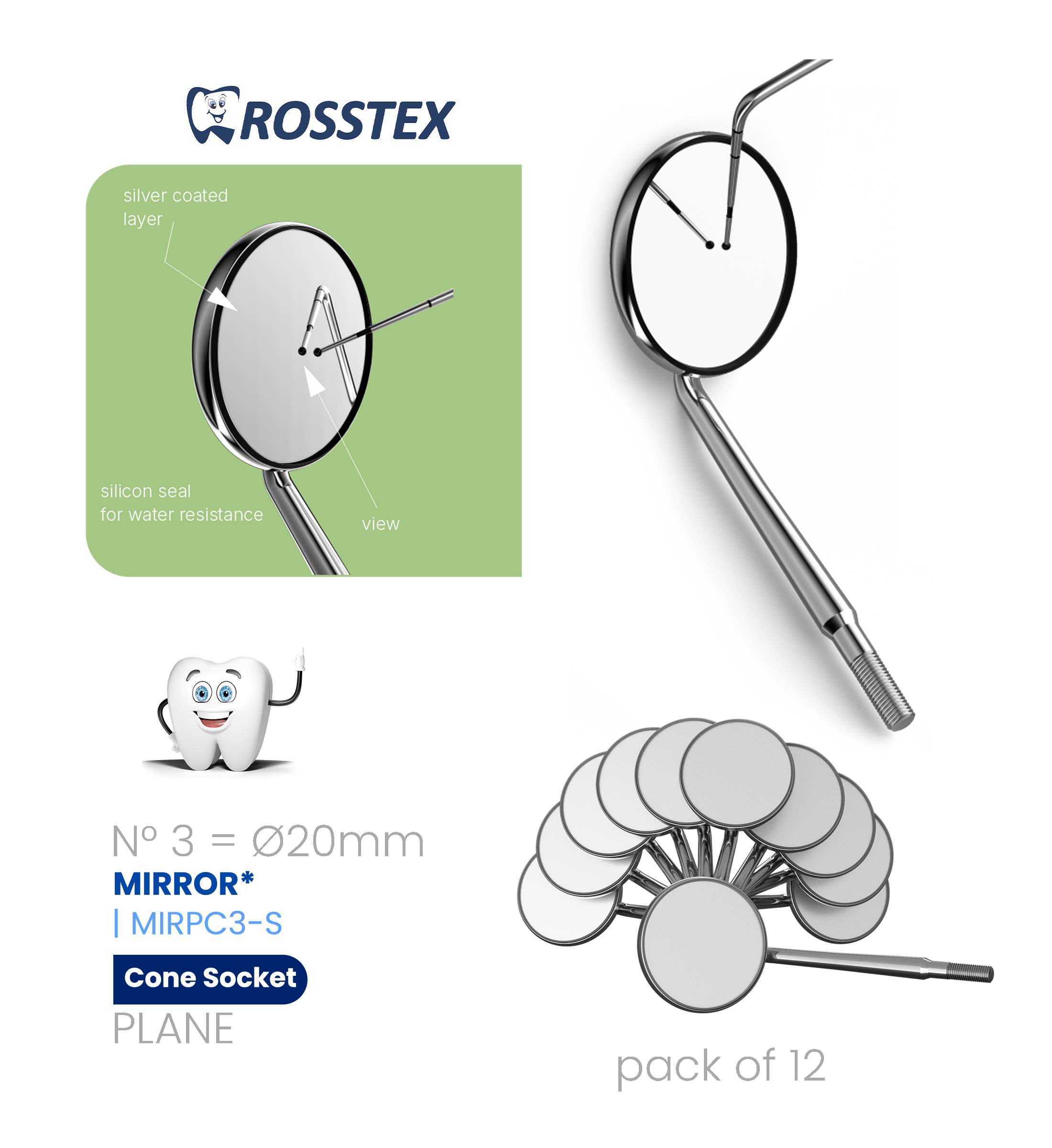 ﷼. 55.00 ﷼. 55.00 ﷼. 55.00 This mirror features a reflective surface on only one side, typically with a #3 mirror size (approximately 20mm in diameter), providing clear, undistorted reflections. The plane mirror surface aids in retracting soft tissues and inspecting various angles within the oral cavity, supporting precision in examination and procedures. High-quality versions may come with scratch-resistant coatings and ergonomic handles for optimal control and durability.