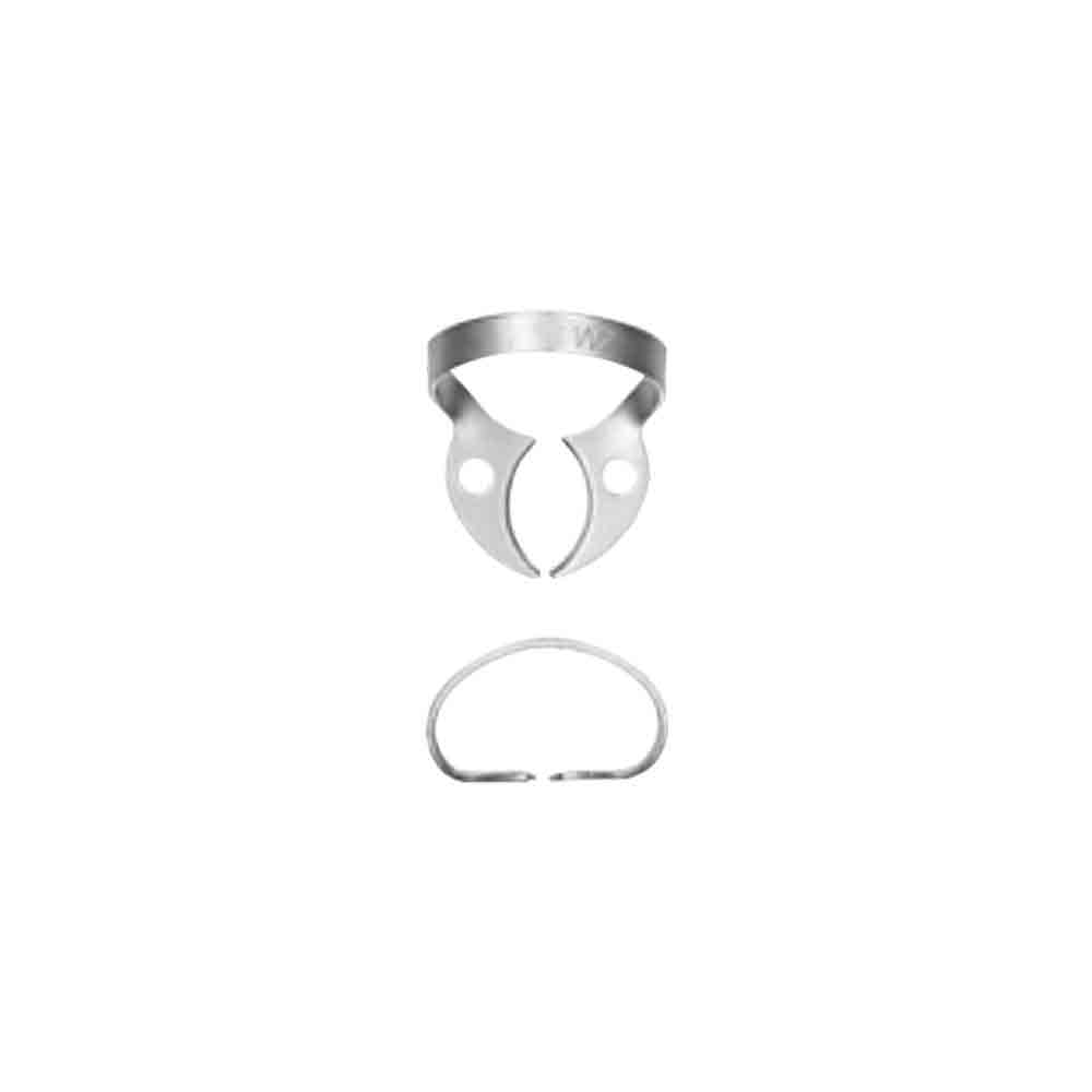 Rubber Dam Clamp Fig. W7 is designed for lower molars, featuring strong, flat jaws that provide a secure subgingival grip. Ideal for partially erupted or irregularly shaped teeth, it ensures stable isolation during posterior dental procedures.