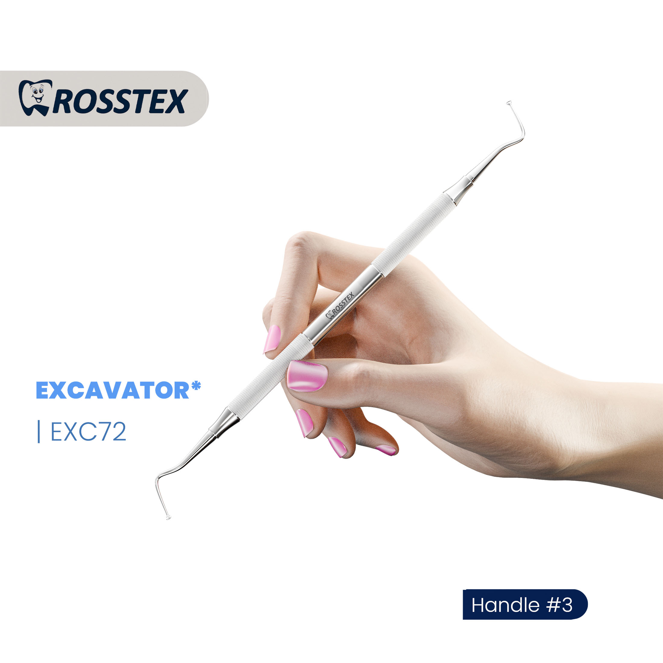 Long Shank Spoon Excavator EXC72 features a 1.75 mm spoon-shaped tip, designed for efficient carious dentin removal.