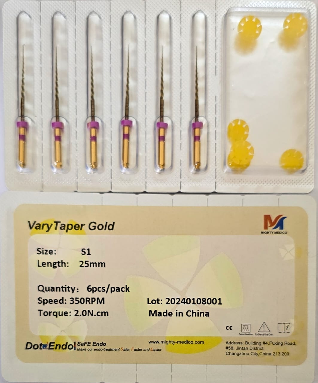 Designed for CCW reciprocation motion. CM wire treatment Certification: Class IIa, CE, ISO