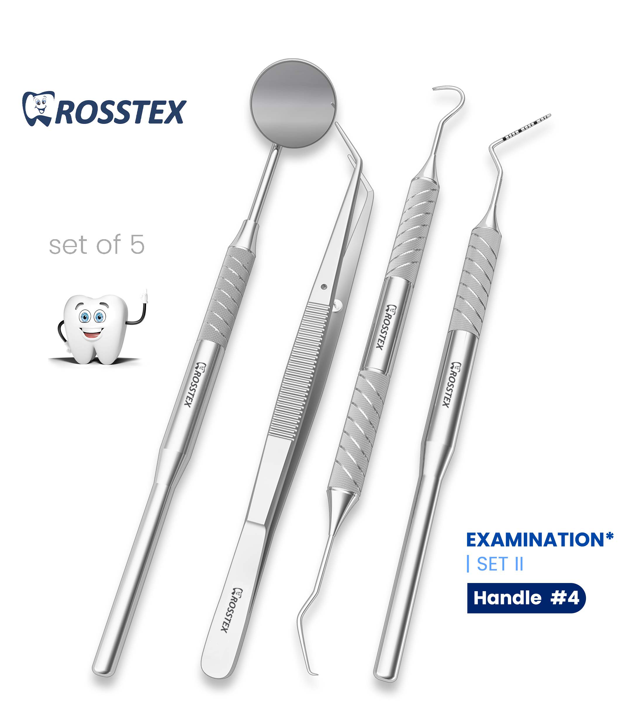 ORGRADE Dental Examination Set II is crafted from premium stainless steel, offering exceptional durability and corrosion resistance. Ergonomic designs ensure comfort and precision, while superior craftsmanship guarantees reliable, easy-to-sterilize tools for outstanding, long-lasting performance.Include: CT-MH4/MIRPE5, CT-DPU17, CT-EXD54, CT-PCPUNC154