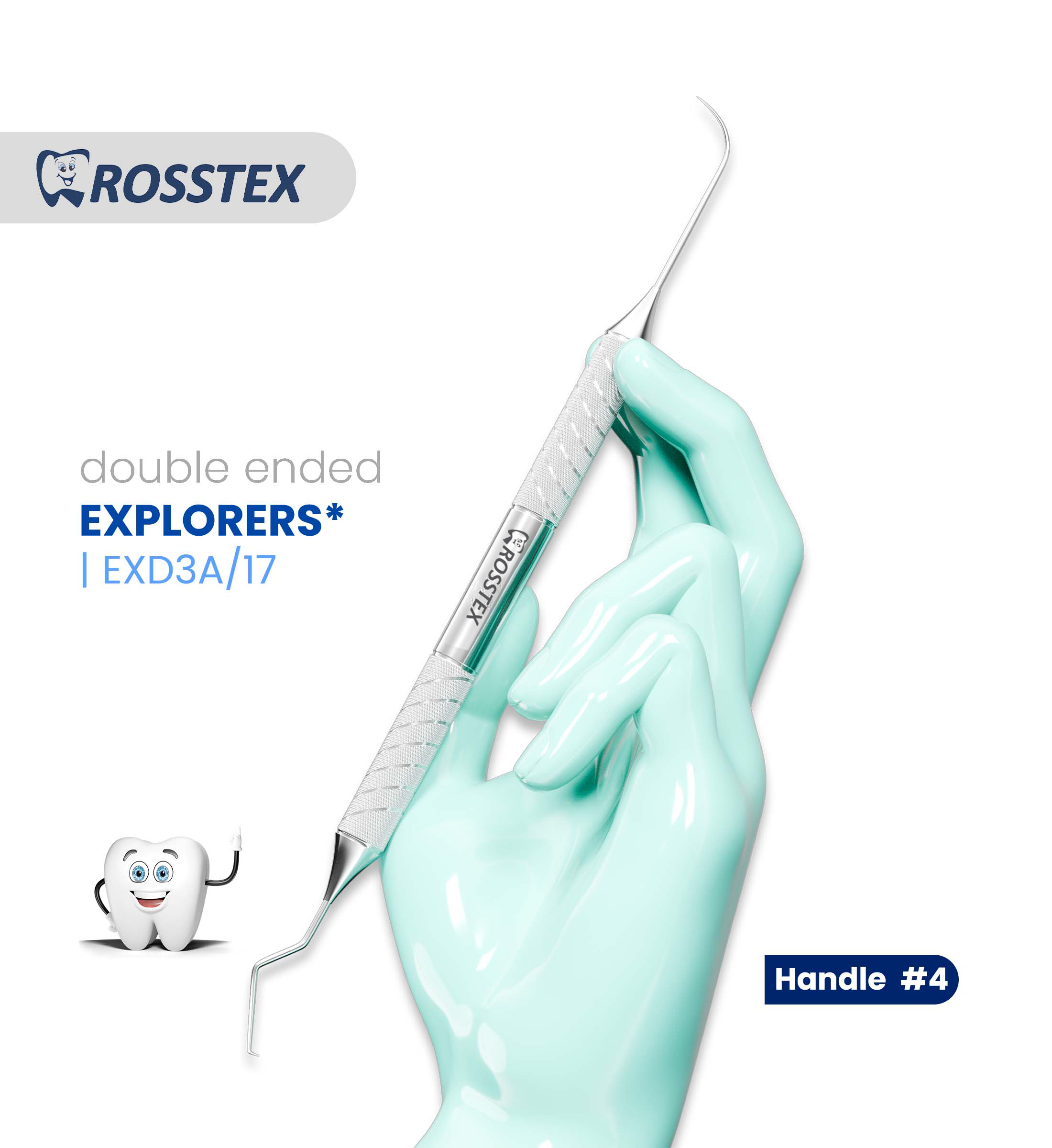 Explorer EXD3A/17 is a double-ended instrument, combining the #3A end for general calculus detection and the #17 end, optimized for precise subgingival exploration. Its ergonomic handle ensures comfort and control.
