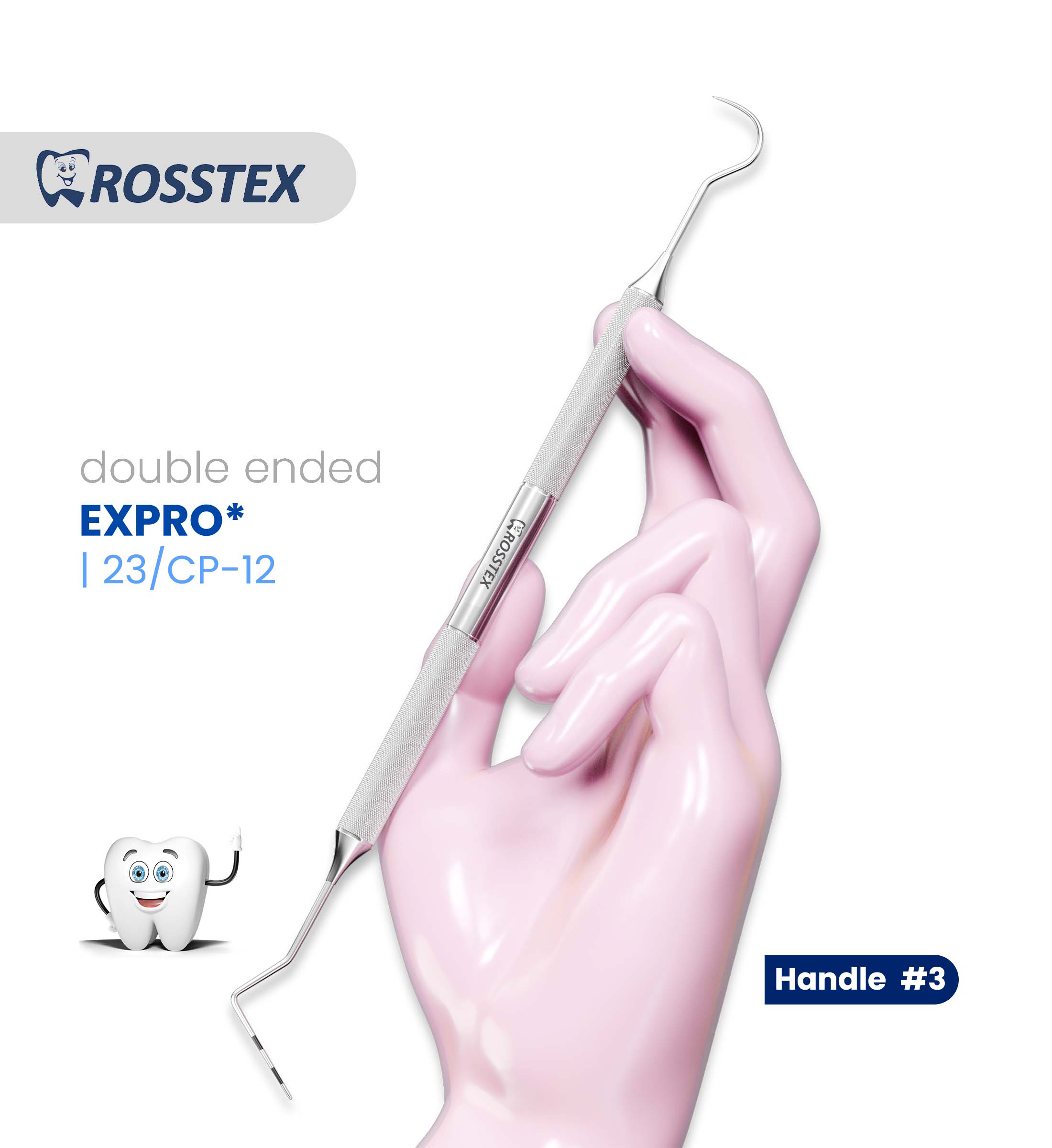 ﷼. 21.00 ﷼. 21.00 ﷼. 21.00 Expro XP23/12 is a double-ended dental instrument featuring a cp-12 probe on one end with clear, color-coded markings for periodontal assessment. The probe is marked from 1 to 12, allowing for precise depth measurements. The other end consists of an explorer.
