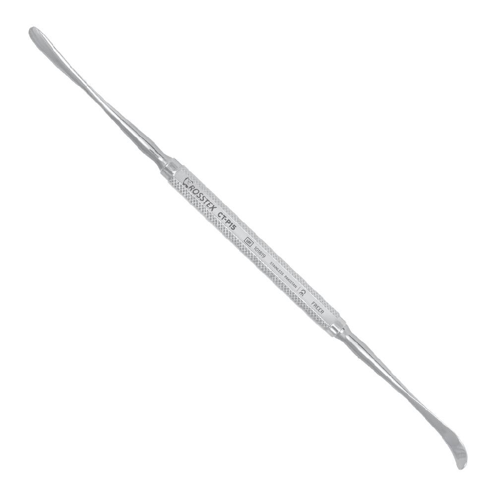 ﷼. 37.50 ﷼. 37.50 ﷼. 37.50 Periosteal Freer Elevator P15 (21.5 cm) is designed for lifting and retracting the mucoperiosteum after gingival incisions. Its dual-ended design ensures precise and atraumatic tissue elevation, making it ideal for oral, periodontal, and maxillofacial surgical procedures.