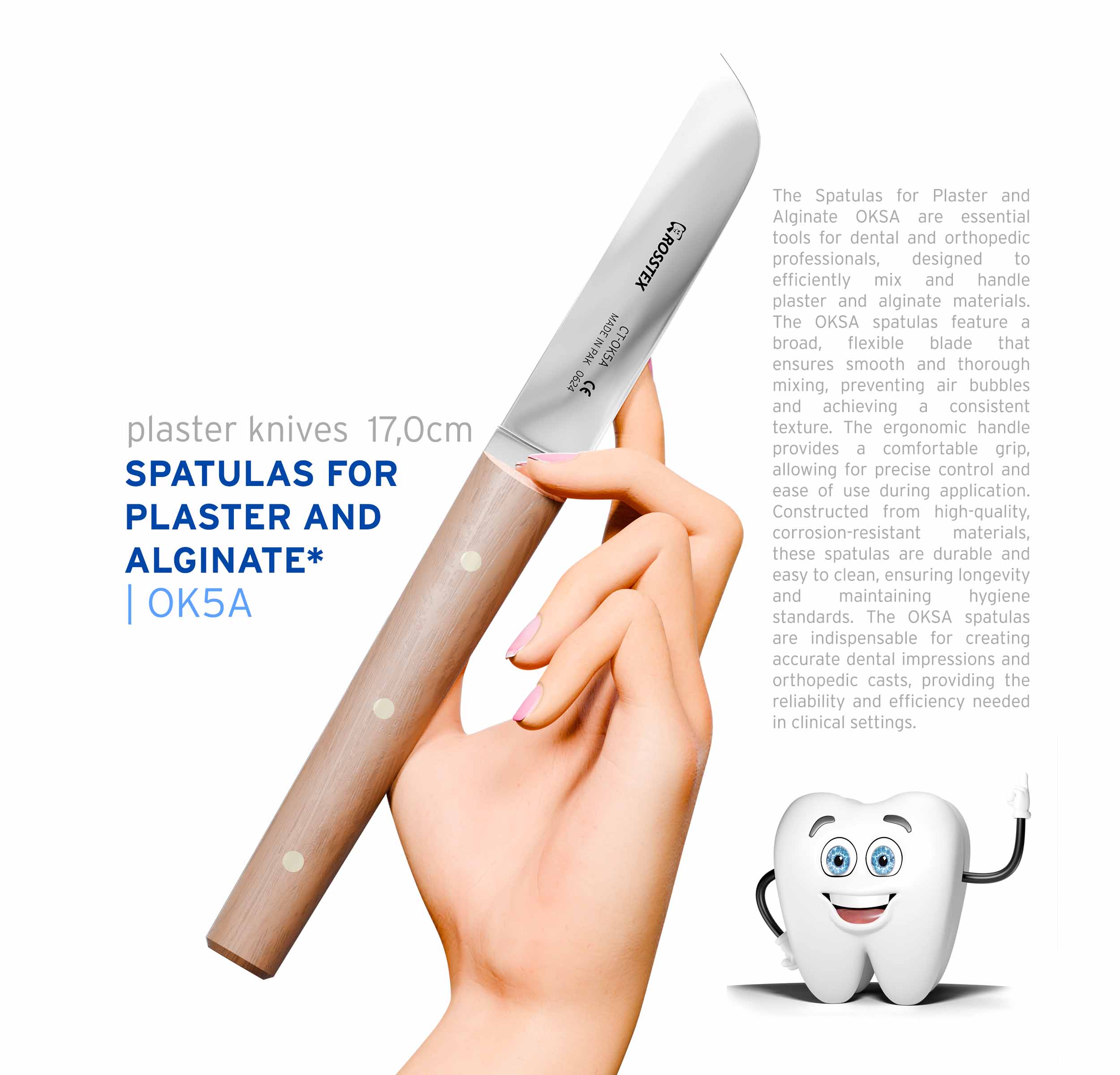 ﷼. 22.50 ﷼. 22.50 ﷼. 22.50 Plaster Knife 17.0cm OK5A is a high-quality stainless steel laboratory instrument designed for cutting, trimming, and shaping plaster and other dental materials. Its sturdy, sharp-edged blade ensures precision and efficiency, while the ergonomic handle offers comfortable, controlled use. Autoclavable and ideal for consistent performance in dental lab settings.
