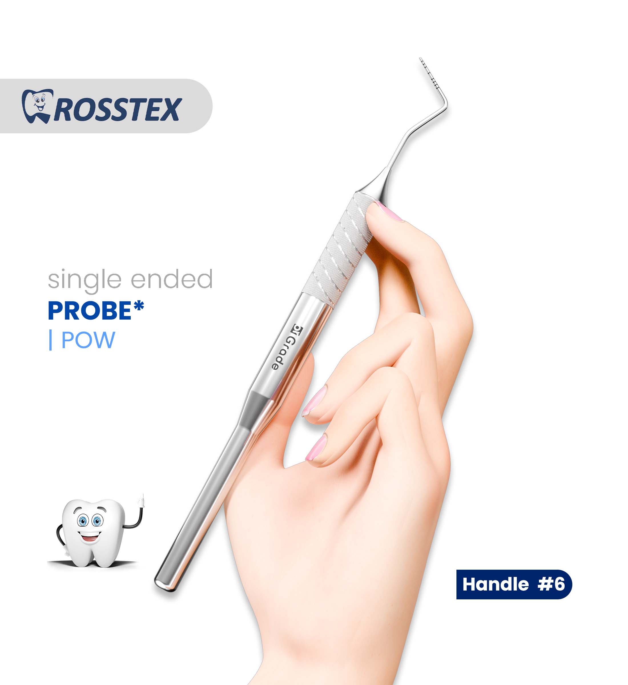 POW is a Periodontal instrument designed to assist in precision scaling and root planing. It is tailored for subgingival cleaning, effectively removing plaque and calculus from below the gumline. with an ergonomic handle, the pow provides a comfortable, secure grip, reducing clinician fatigue during prolonged use.